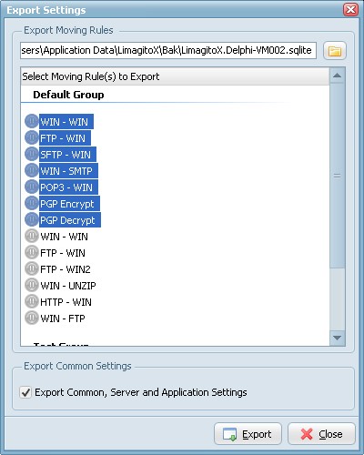 - Second: Select the moving rules you want to export.
